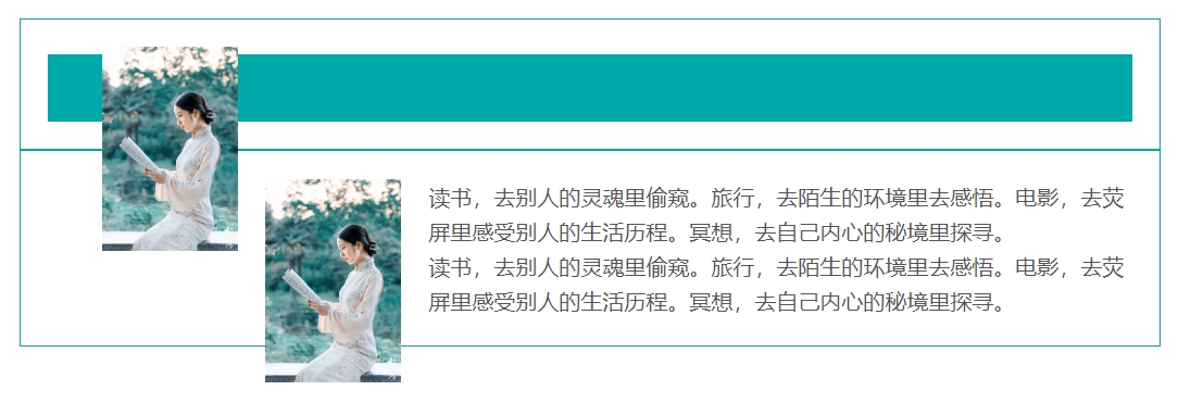 <div class="text">读书,去别人的灵魂里偷窥。旅行,去陌生的环境里去感悟。电影,去荧屏里感受别人的生活历程。冥想,去自己内心的秘境里探寻。<br />读书,去别人的灵魂里偷窥。旅行,去陌生的环境里去感悟。电影,去荧屏里感受别人的生活历程。冥想,去自己内心的秘境里探寻。</div>
