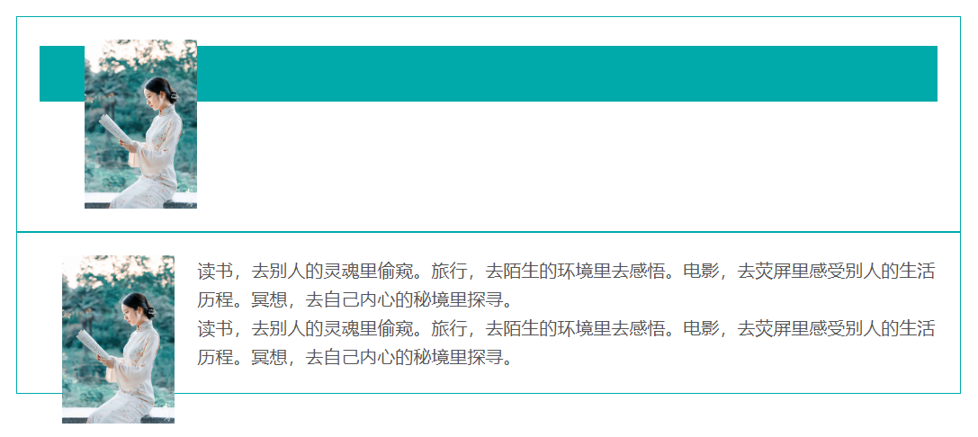 浮动最初的定义:实现文本环绕图片的效果。除此之外,没有其他方法可实现。