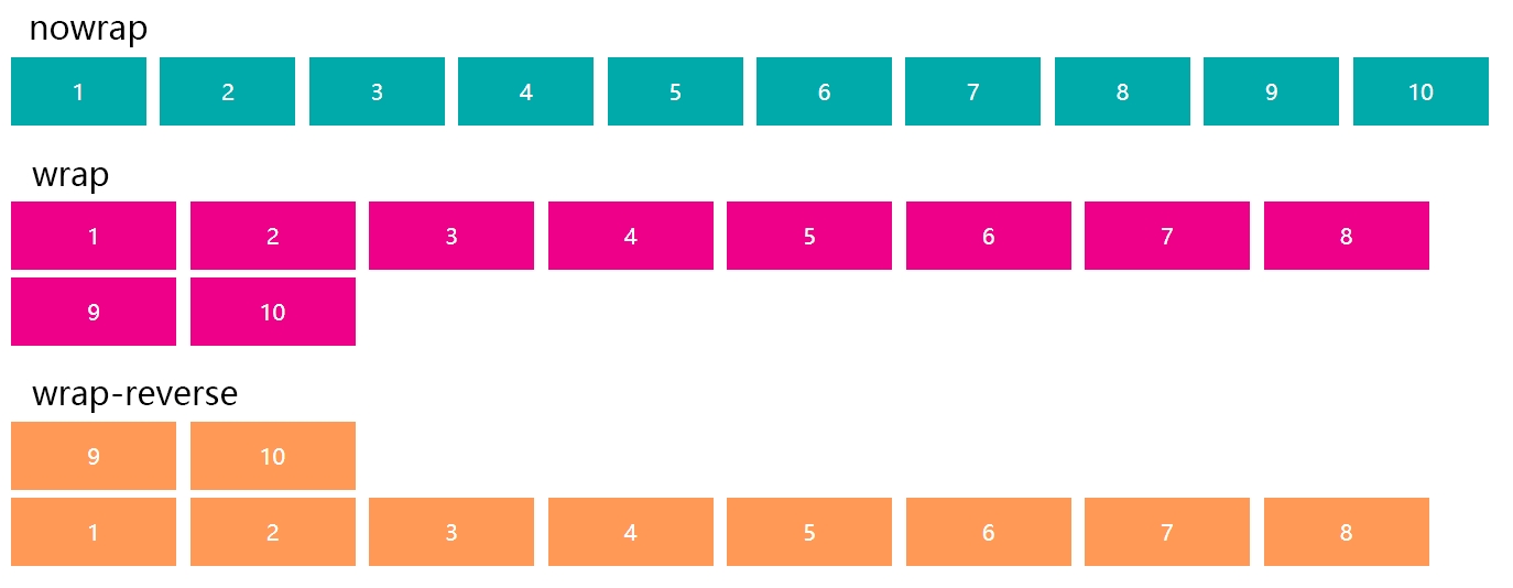 属性指定弹性项目单行显示还是多行显示 。如果允许换行,这个属性允许你控制行的堆叠方向(从左到中、从右到左)。