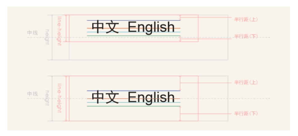 默认情况下一行文本的行高分为:上半行距,内容区域的高度,下半行距,并且上半行距是等于下半行距的。当line-height