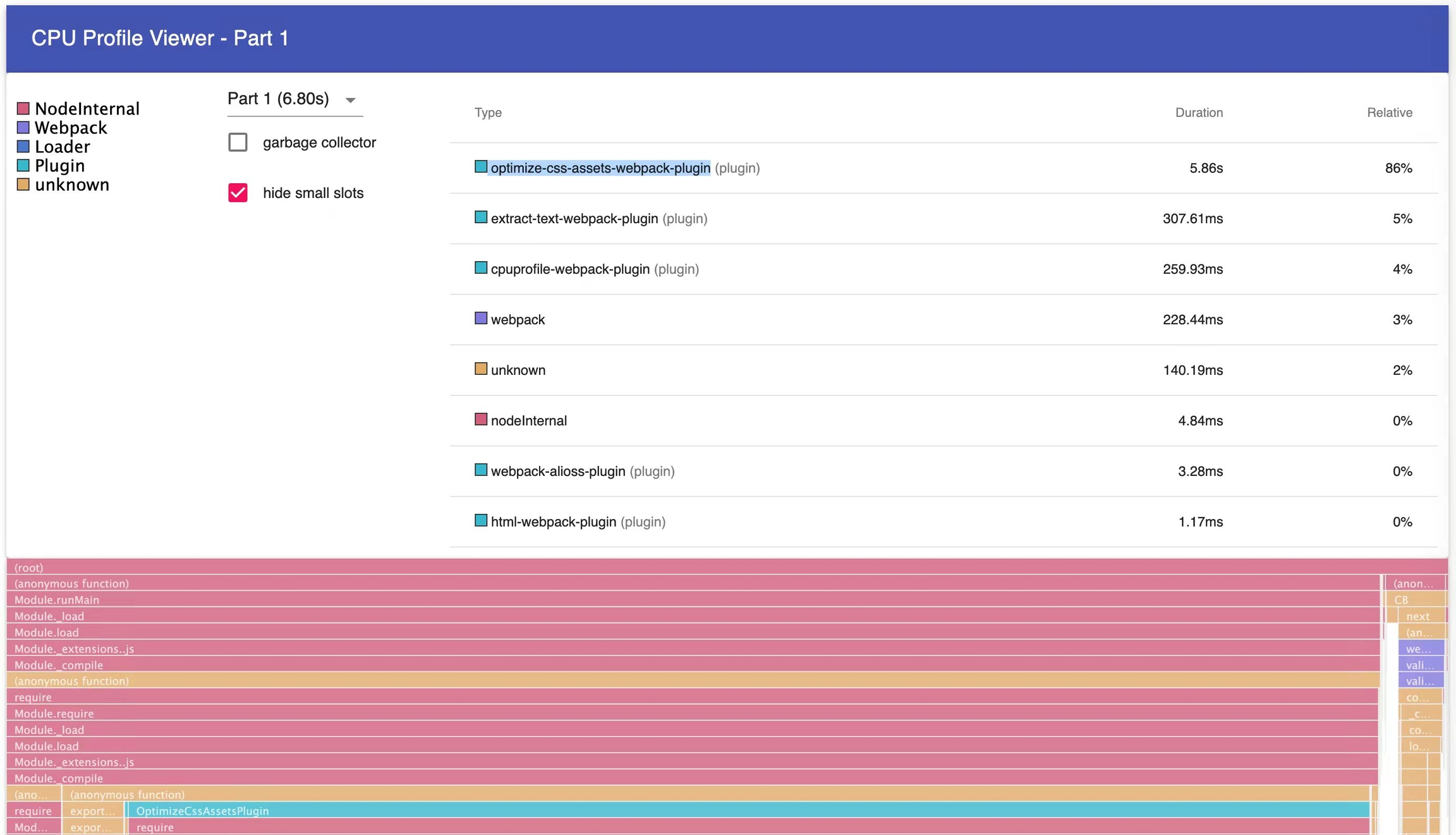 它会告诉你编译过程中哪些步骤耗时最长。这是优化 webpack 构建速度的第一步,先知道要在哪些方面做优化。