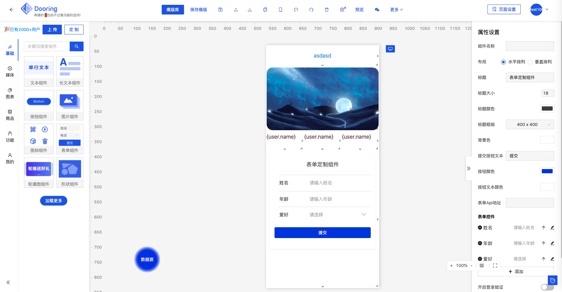 H5-Dooring 是一款功能强大,开源免费的 H5 可视化页面配置解决方案,致力于提供一套简单方便、专业可靠、无限可能的 H5 落地页最佳实践。技术栈以 react 为主, 后台采用 nodejs 开发。