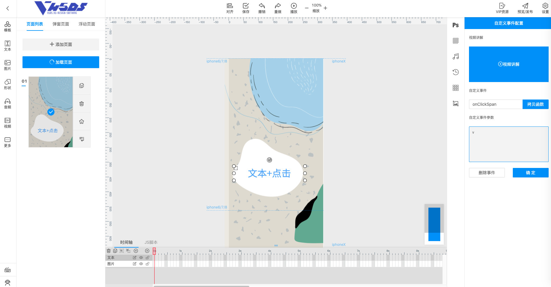组件系统:普通文字、普通按钮、普通图片、背景图、背景音乐、视频(Iframe形式)、表单按钮、表单输入框、表单单选框、表单多选框。