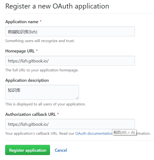 新建应用,首页 url 和授权回调 url 填写相同的首页链接即可,其他情况自定义填写。